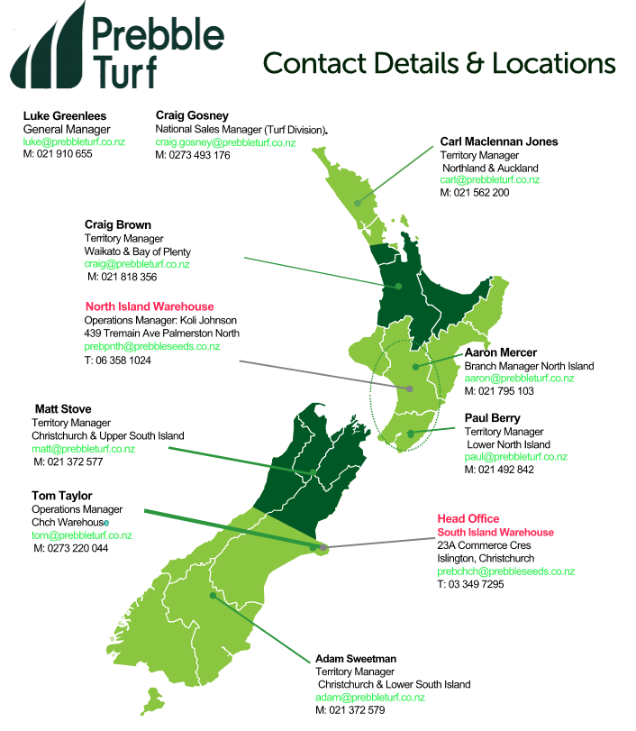 Email Links South Island: prebchch@prebbleseeds.co.nz North Island: prebpnth@prebbleseeds.co.nz Luke Greenlees luke@prebbleturf.co.nz Craig Gosney craig.gosney@prebbleturf.co.nz Carl Maclennan Jones carl@prebbleturf.co.nz Craig Brown craig@prebbleturf.co.nz Paul Berry paul@prebbleturf.co.nz Aaron Mercer aaron@prebbleturf.co.nz Matt Stove matt@prebbleturf.co.nz Tom Taylor tom@prebbleturf.co.nz Adam Sweetman adam@prebbleturf.co.nz |